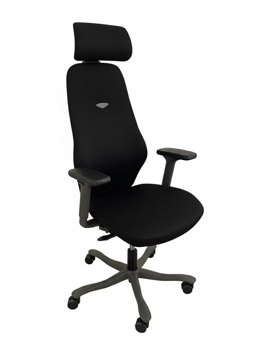 Kinnarps Plus [8] kombinerer ergonomisk komfort og solid kvalitet med et stilrent uttrykk. Denne modellen har høy rygg og integrert nakkestøtte — ideell for deg som sitter lenge og ønsker støtte, bevegelsesfrihet og proff estetikk.